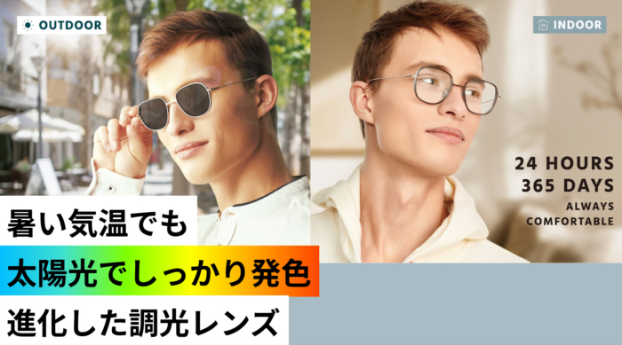 今回新しくなった「ルティーナフォト2」は、気温の高い日でも太陽光(紫外線)でしっかり発色する調光レンズとなっています。