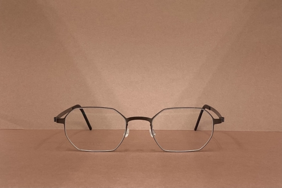 オーソドックスなスクエアですが、まっすぐに伸びるブリッジが22mmと長く、おだやかな雰囲気です。