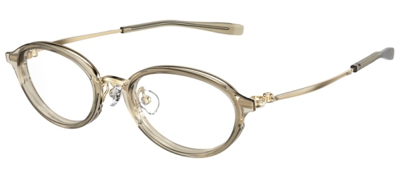 こちらはオーバル型。お顔に掛けた時のレンズ縦幅のバランスを見る必要がありますね。
