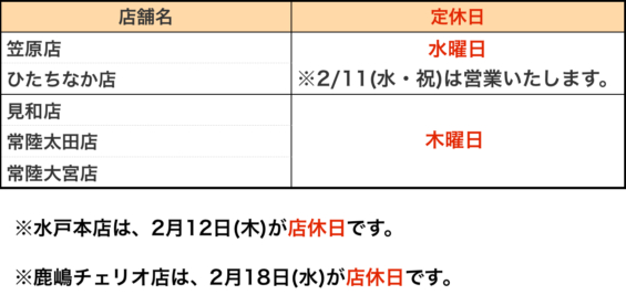 2月定休日のお知らせ。2026年1月30日お知らせ,インフォメーション,サングラス,メガネ,光学品,補聴器営業時間,定休日2月4日は立春です。 春の芽吹きを感じられる時期に入りましたが、まだまだ冬の底冷えが続きますね。 どうぞお体を暖かくしてお過ごしください。 2月の定休日と店休日のお知らせです。