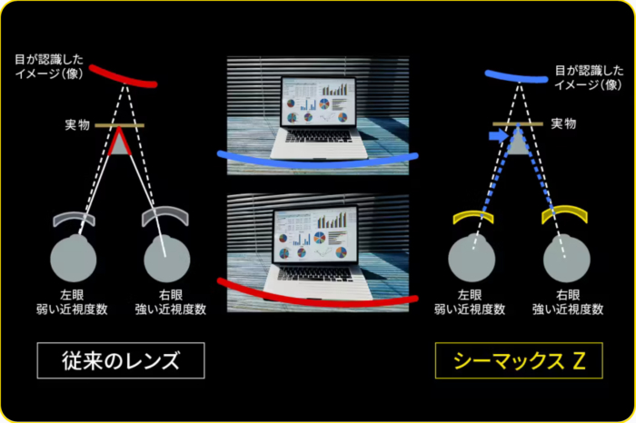 「左右の度数を総合的に考慮し、左右のレンズで生じるプリズム差を最小限に抑えることで、両眼のバランスが取れたレンズ設計に最適化します。」
